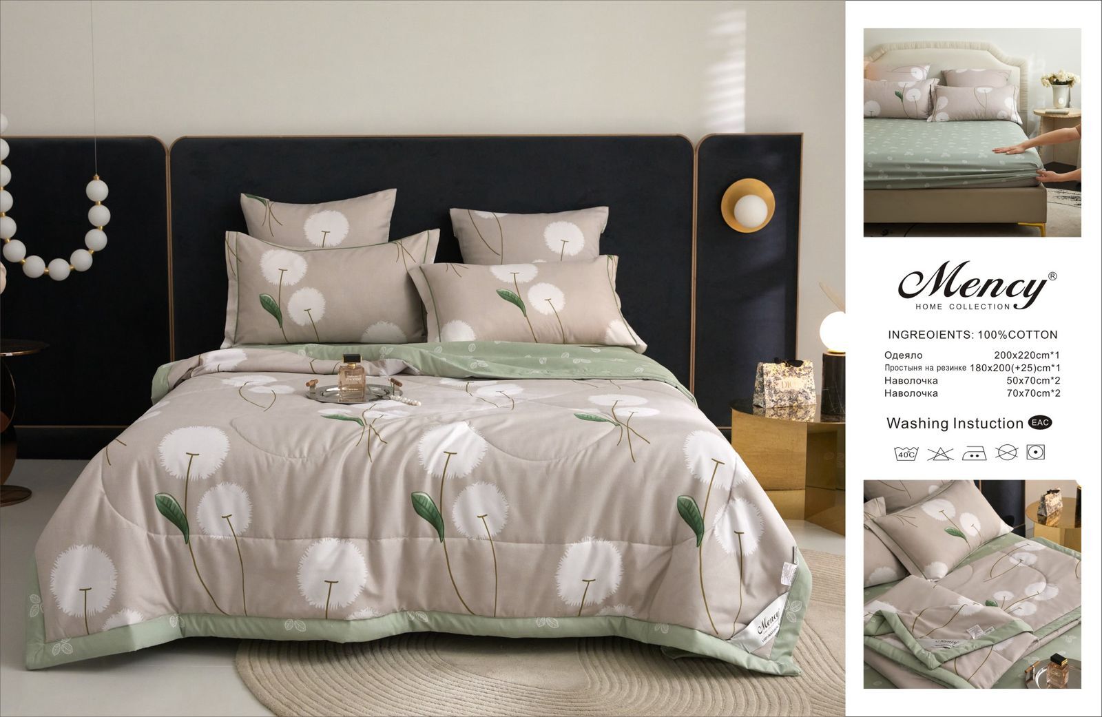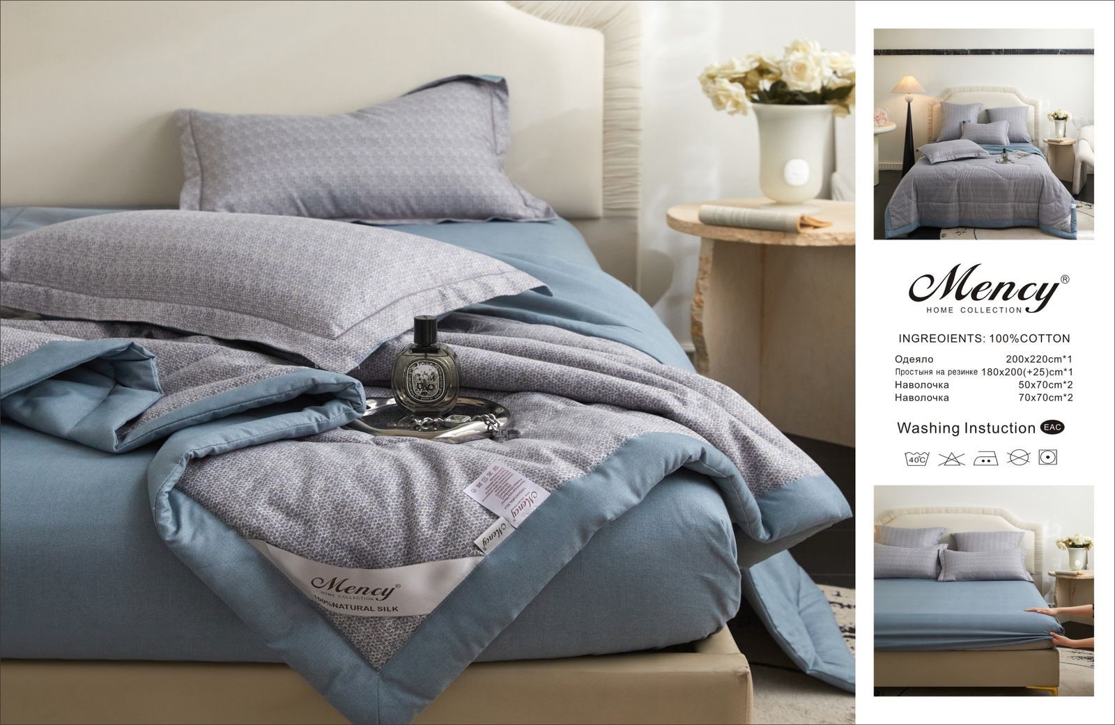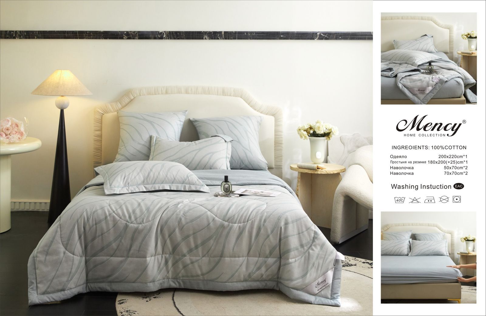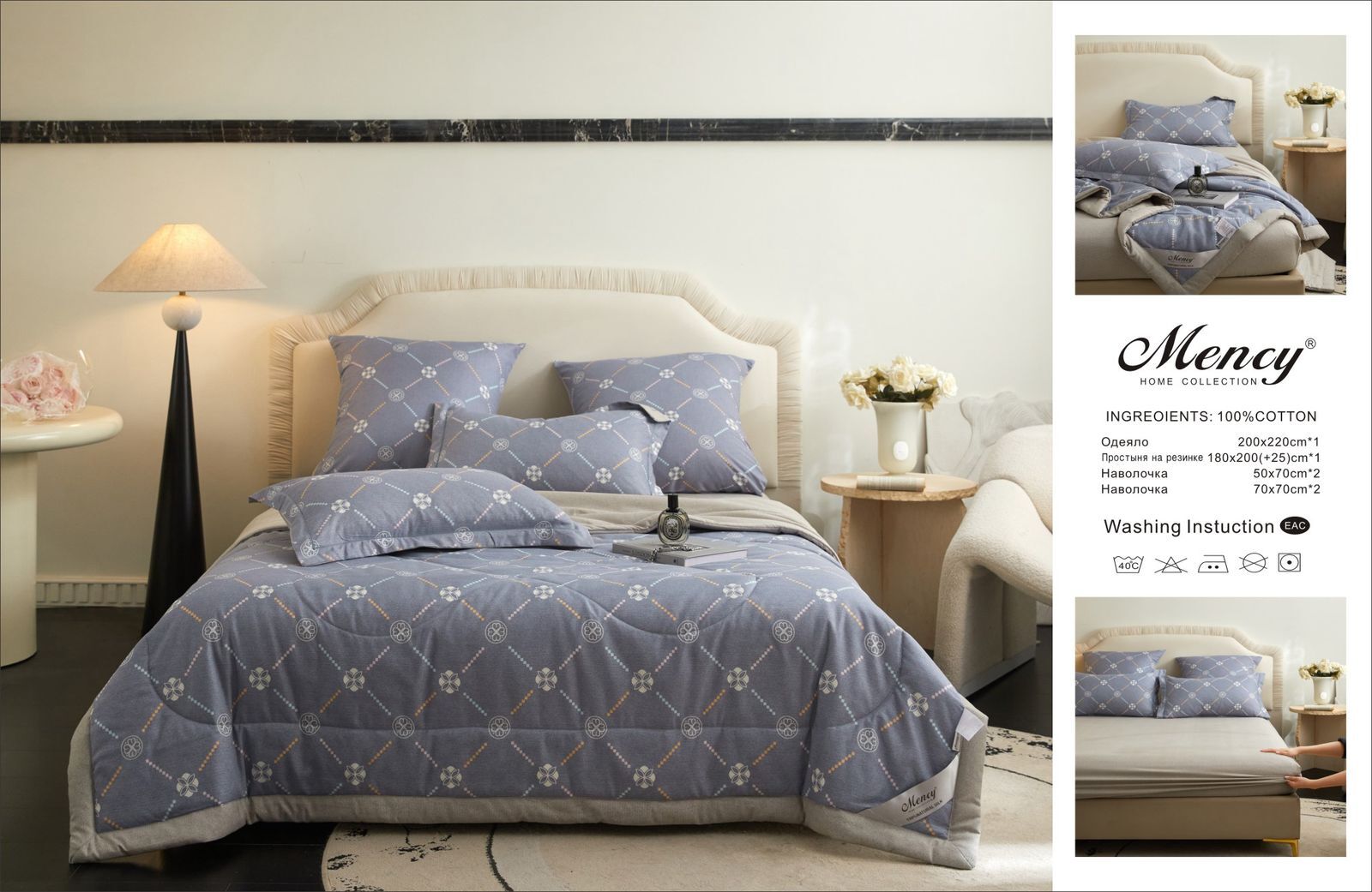 Комплект постельного белья с одеялом "Mency" на резинке