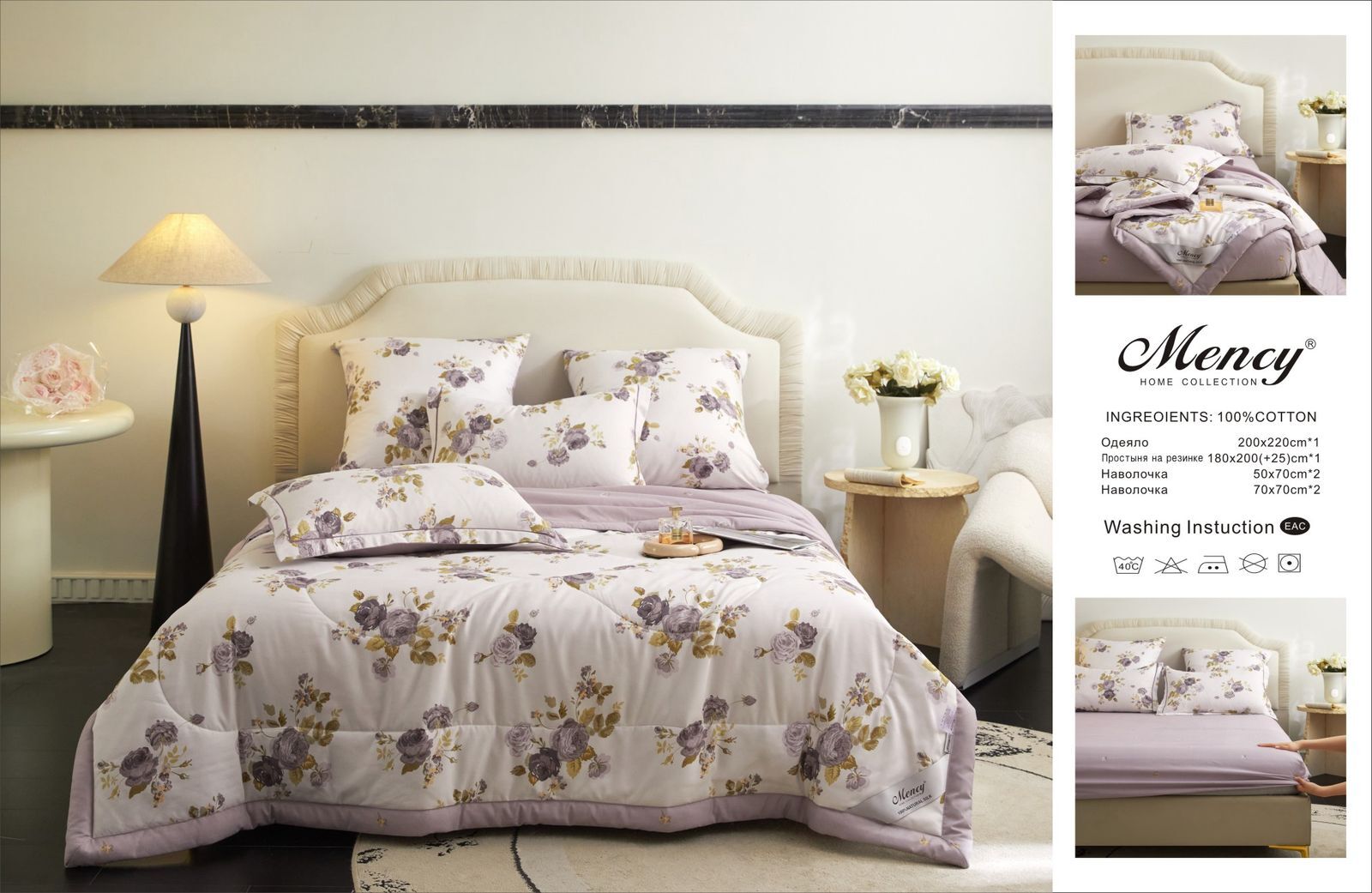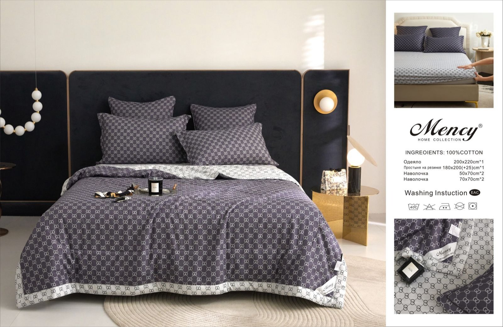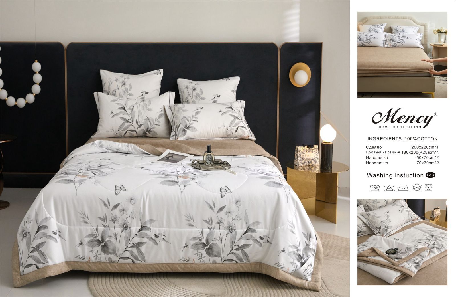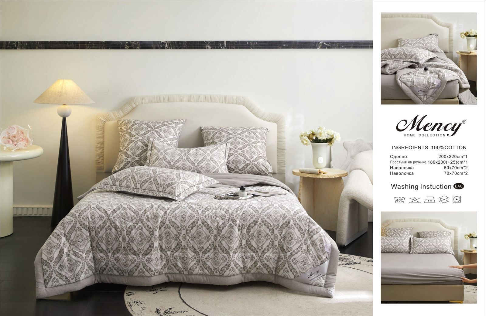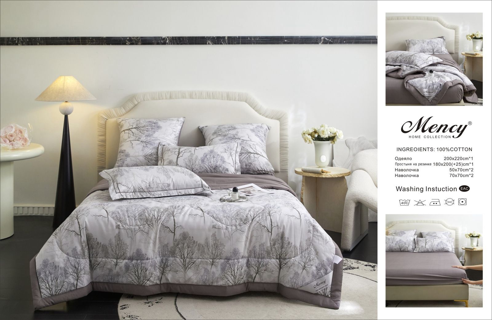 Комплект постельного белья с одеялом "Mency" на резинке