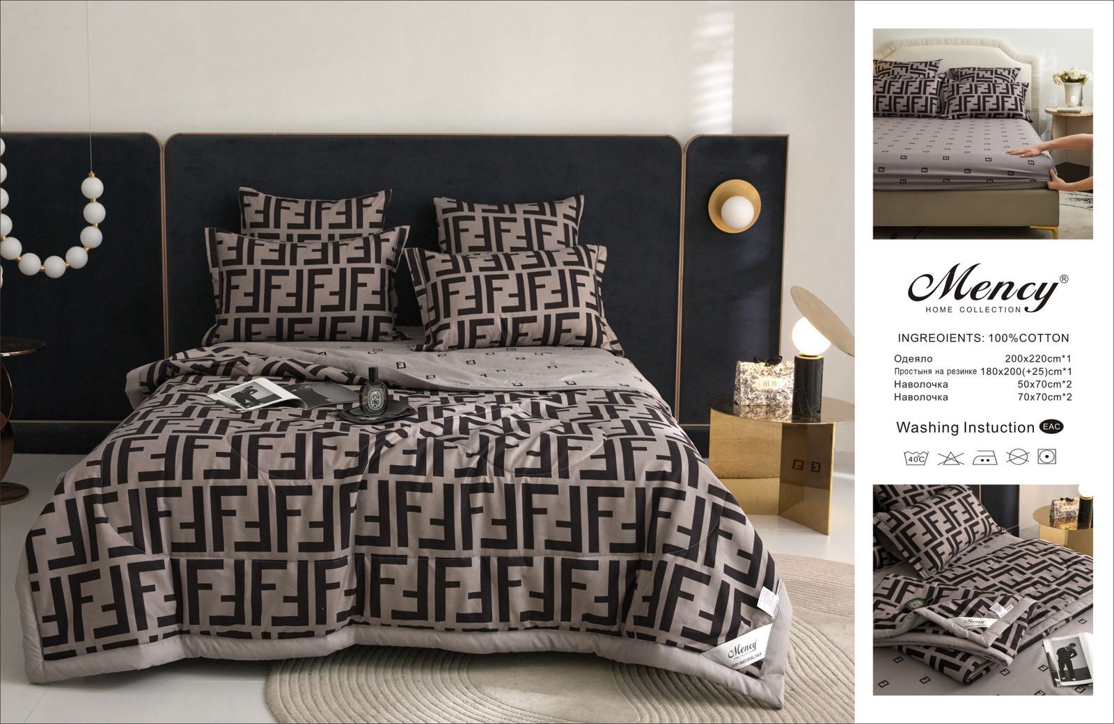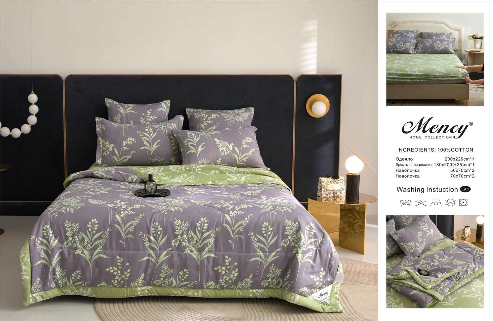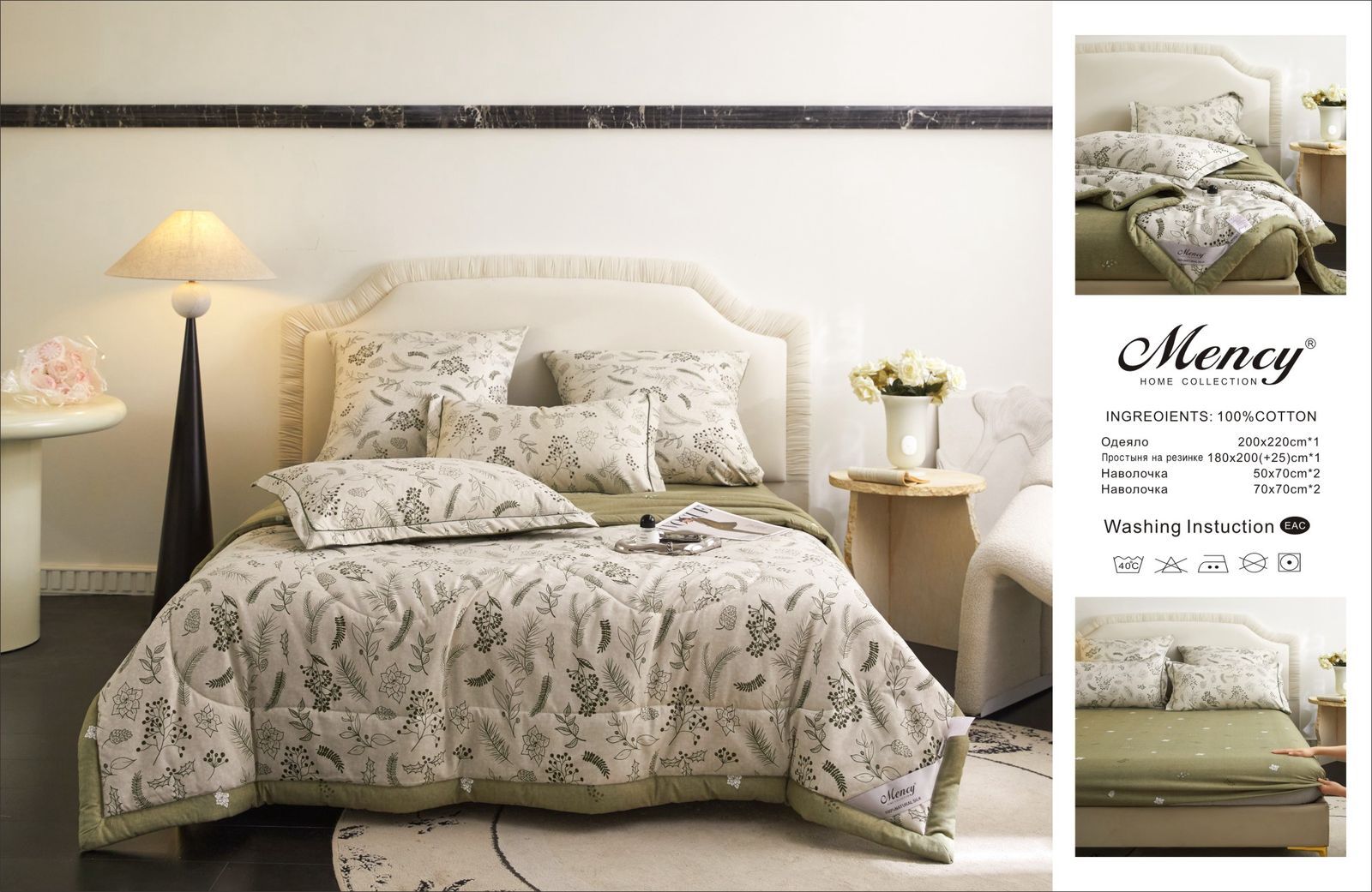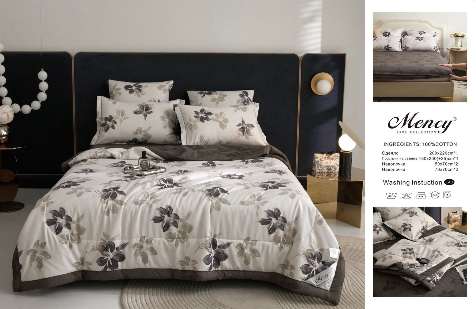 Комплект постельного белья с одеялом "Mency" на резинке