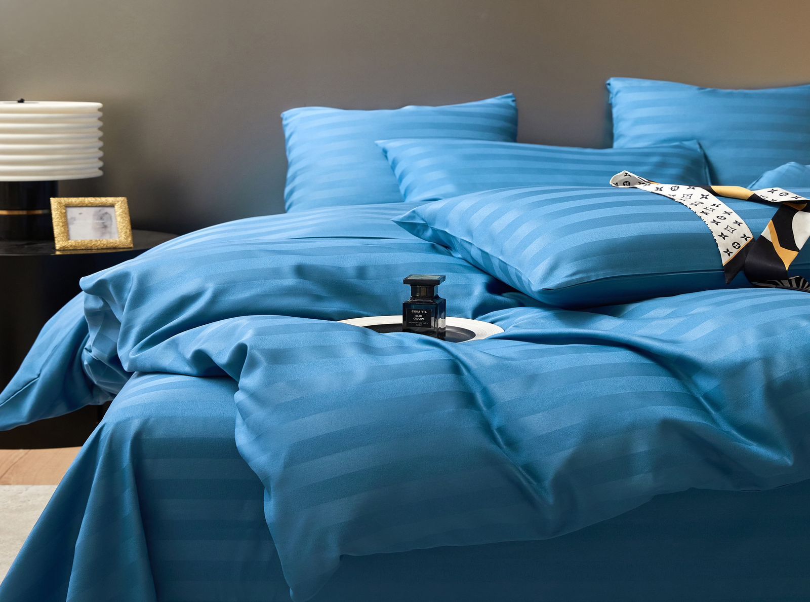 Коробка постельного белья "Mency" Страйп-сатин на резинке